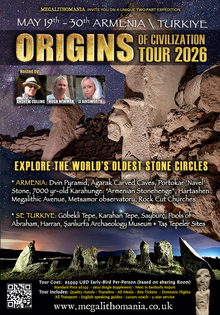 Today we visit the enigmatic Göbekli Tepe where the remains of the earliest religious structures built by man exist, constructed nearly 12,000 years ago, making it the oldest megalithic site on the planet. See its extraordinary rings of T-shaped standing stones with carved reliefs of birds, animals and other abstract forms. Learn its history and place in the origins of civilization. The site contains a vast array of circular structures and huge pillars, some with beautiful limestone carvings of lions, foxes, snakes and birds, believed to be gatekeepers of the entrance to the next world. There are striking similarities to sites in Peru, Bolivia and Easter Island that Hugh has written about in an article on Graham Hancock's website (read article here). To date less than ten percent of the site has been excavated.