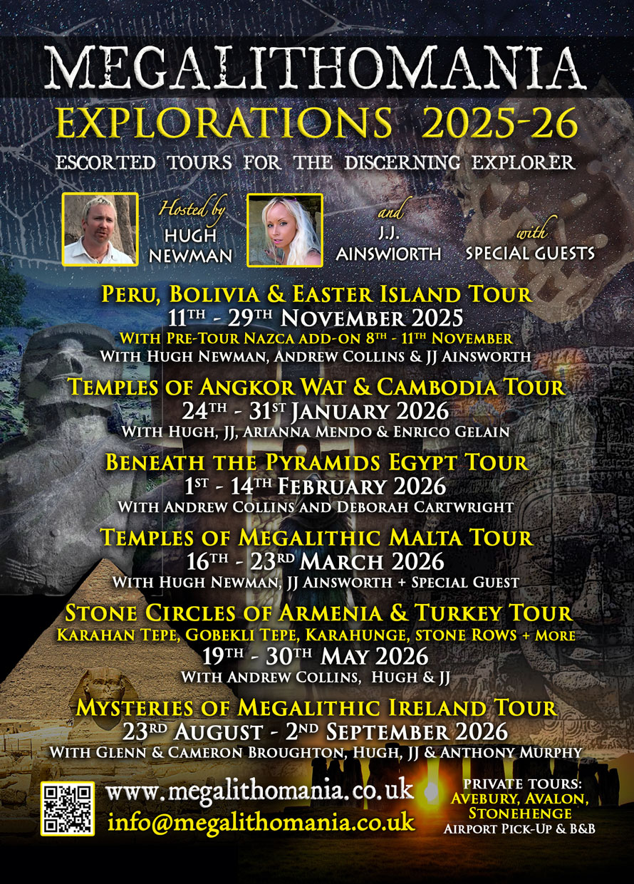 He has articles published in Atlantis Rising (US), New Dawn (Australia), Nexus (UK/AUS), Mindscape (UK), Heretic (UK), World Explorers Magazine (US), The Circular (UK), The Leyhunter (UK) and on websites such as www.ancient-origins.net, www.grahamhancock.com and www.academia.edu. He has a Bachelor of Arts Honours Degree (BA Hons) in Film and Journalism from London Guildhall University. He is also a registered drone pilot and has had his work featured on most of the shows listed above, as well as in Ancient Apocalypse (Netflix), Stonehenge: The Lost Circle (BBC) Megaliths: Forgotten World, and BAM: Builders of Ancient Mysteries. As well as founding (with John Martineau and Gareth Mills) the annual Megalithomania conference, he co-founded the Origins Conference with Andrew Collins, and has been leading popular worldwide tours since 2010. He has spoken at events in the UK, Australia, Malta, France, Peru, Egypt, Turkey, Spain, Cambodia, Java, South Africa and North America. He was awarded the Ancient Civilizations Researcher of the Year trophy at the 2024 4bidden Knowledge Conscious Awards in Miami, US. He is the co-discoverer of the winter solstice sunrise alignment at Karahan Tepe with JJ Ainsworth, and uncovered a forgotten Viracocha statue at Tiwanaku in Bolivia in 2018. He was also involved in the construction of a modern stone circle in Somerset in 2006. He currently lives in the Stonehenge landscape in Wiltshire, England and got engaged to JJ Ainsworth in September 2022.. He can be contacted at info@megalithomania.co.uk |